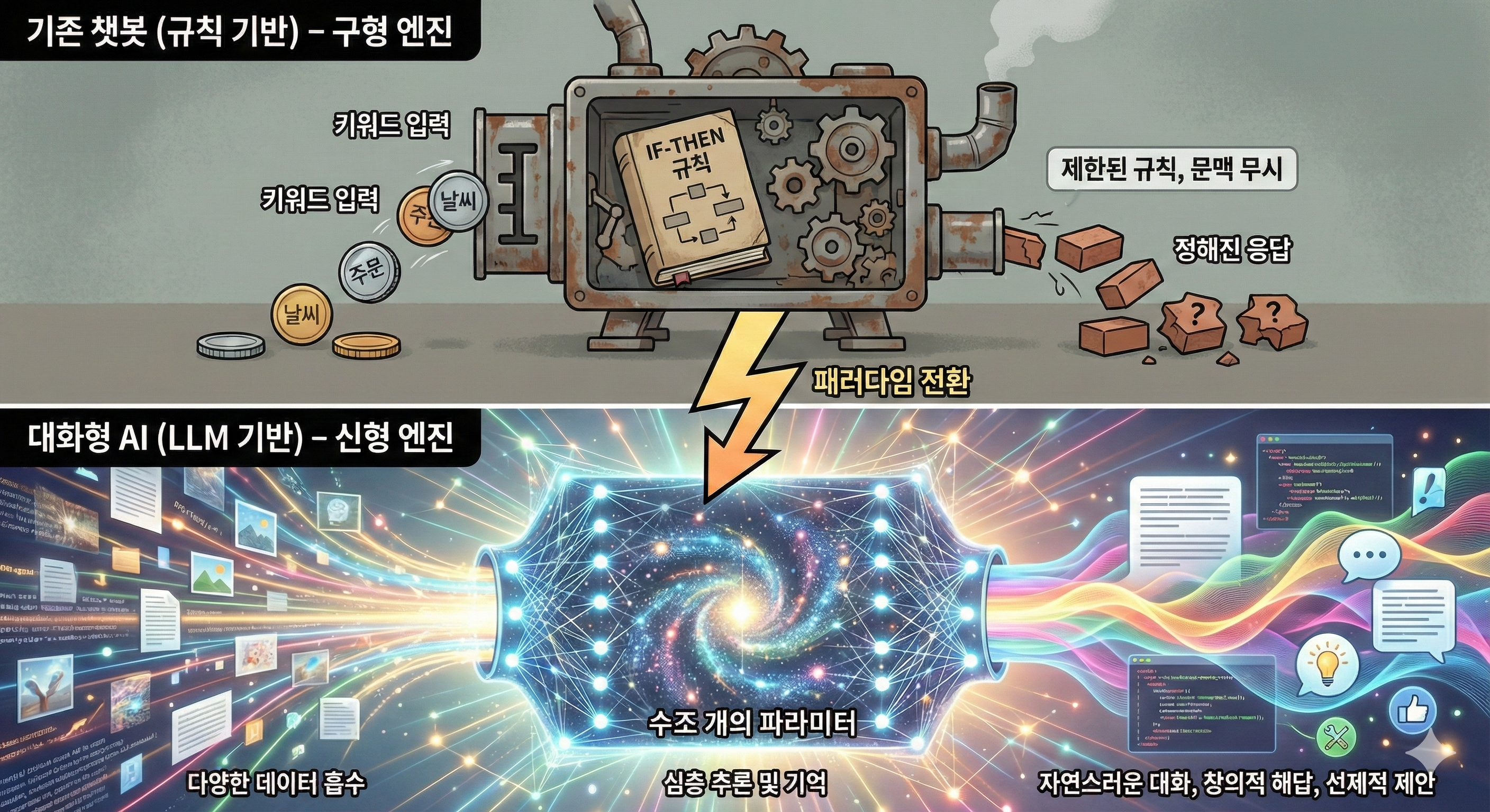 얼마 전까지만 해도 '대화형 서비스'라고 하면 거의 대부분 '챗봇'을 떠올리곤 했습니다. 특정 주제에 한정해 정해진 응답만 하는 기존의 챗봇은 '규칙 기반 자연어 처리' 기술을 활용하는 사례가 많았고, 그 결과 매끄러운 대화는커녕 엉뚱한 응답을 자주 하는 탓에 널리 적용되기 어려웠습니다.