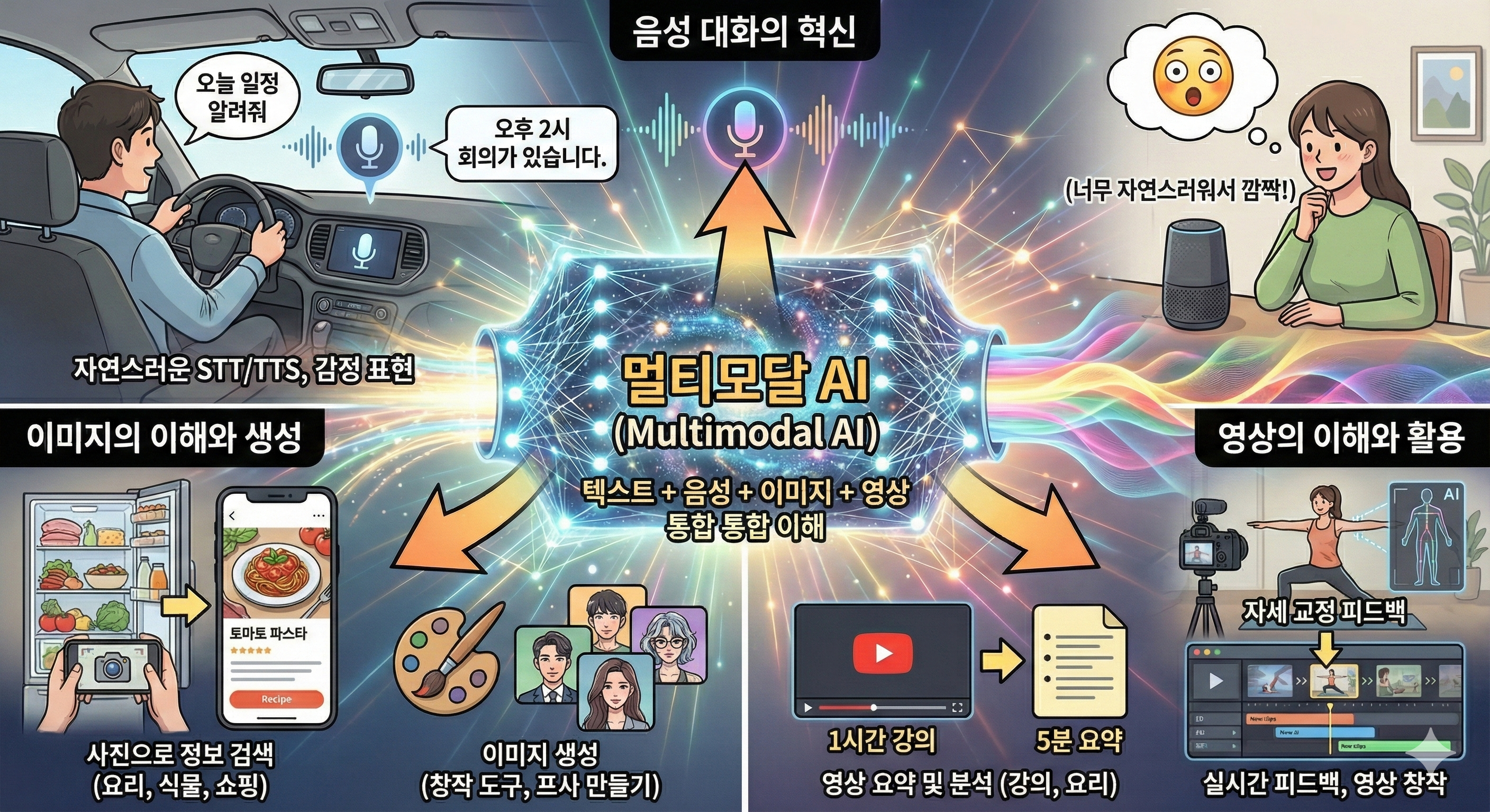 LLM 기반 대화형 AI 서비스의 혁신은 여기서 멈추지 않고, 텍스트뿐만 아니라 이미지, 음성, 영상을 모두 포함하는 '멀티모달' 지원으로 우리의 일상에 새로운 차원의 변화를 가져오고 있습니다.