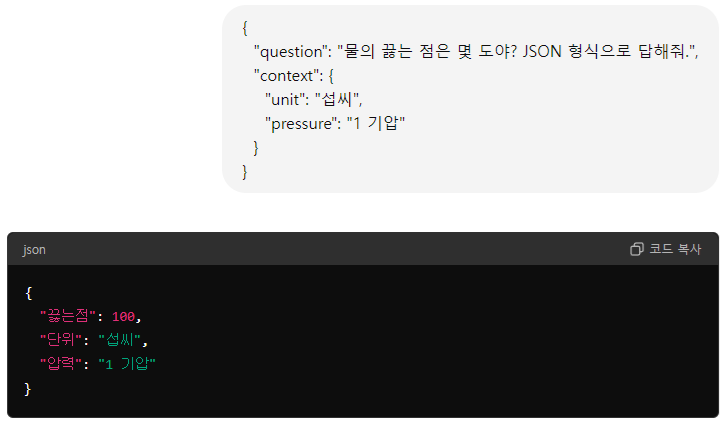 예시 - 특정 형식으로 답변을 요청하는 경우 :