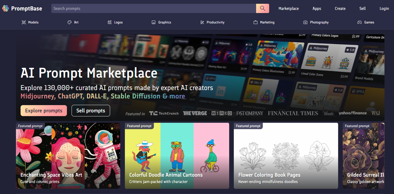 PromptBase는 AI 프롬프트를 위한 마켓플레이스로, ChatGPT, Midjourney, DALL-E 등 다양한 모델을 위한 엄선된 프롬프트를 광범위하게 제공합니다. 사용자들은 마케팅, 생산성, 글쓰기 등의 카테고리를 아우르는 프롬프트를 판매/구매할 수 있습니다.