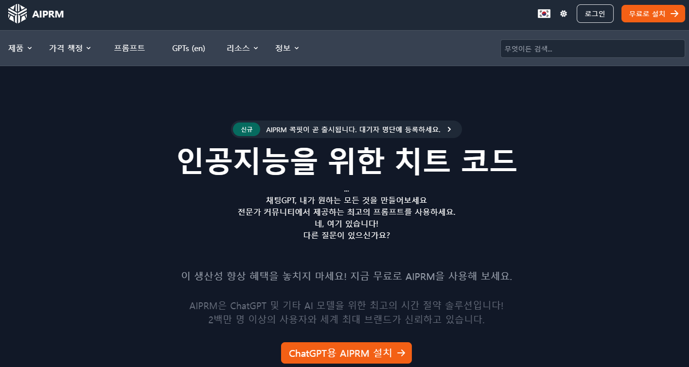 AIPRM (🔗: https://www.aiprm.com/ko/ )