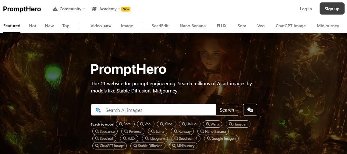 많은 사용자를 확보하여 현재 가장 활발한 커뮤니티 중 하나로, 무료로 다양한 모델을 위한 수많은 프롬프트가 공유되는 곳입니다.