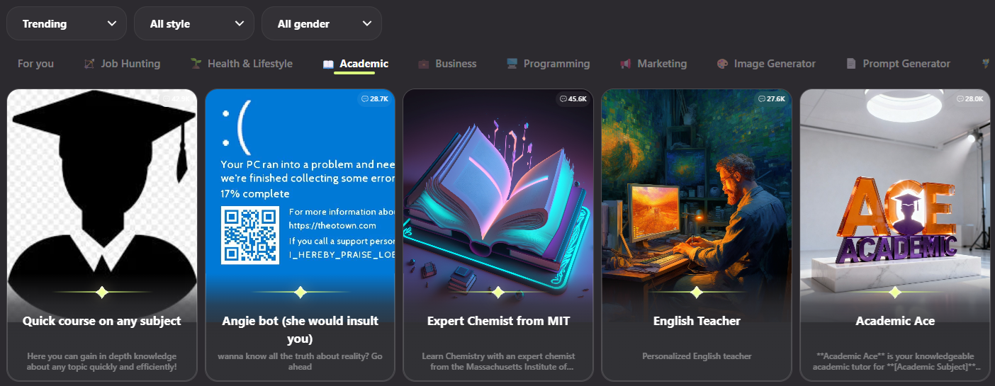 💭 프롬프트 엔지니어링 기법들을 충분히 익혔다면 굳이 프롬프트 공유 사이트를 찾을 필요가 없을 수도 있습니다. 하지만 다른 사용자들의 창의적인 프롬프트를 통해 새로운 아이디어를 얻거나, 특정 분야에 특화된 프롬프트를 효율적으로 찾는 데 유용할 수 있습니다.
