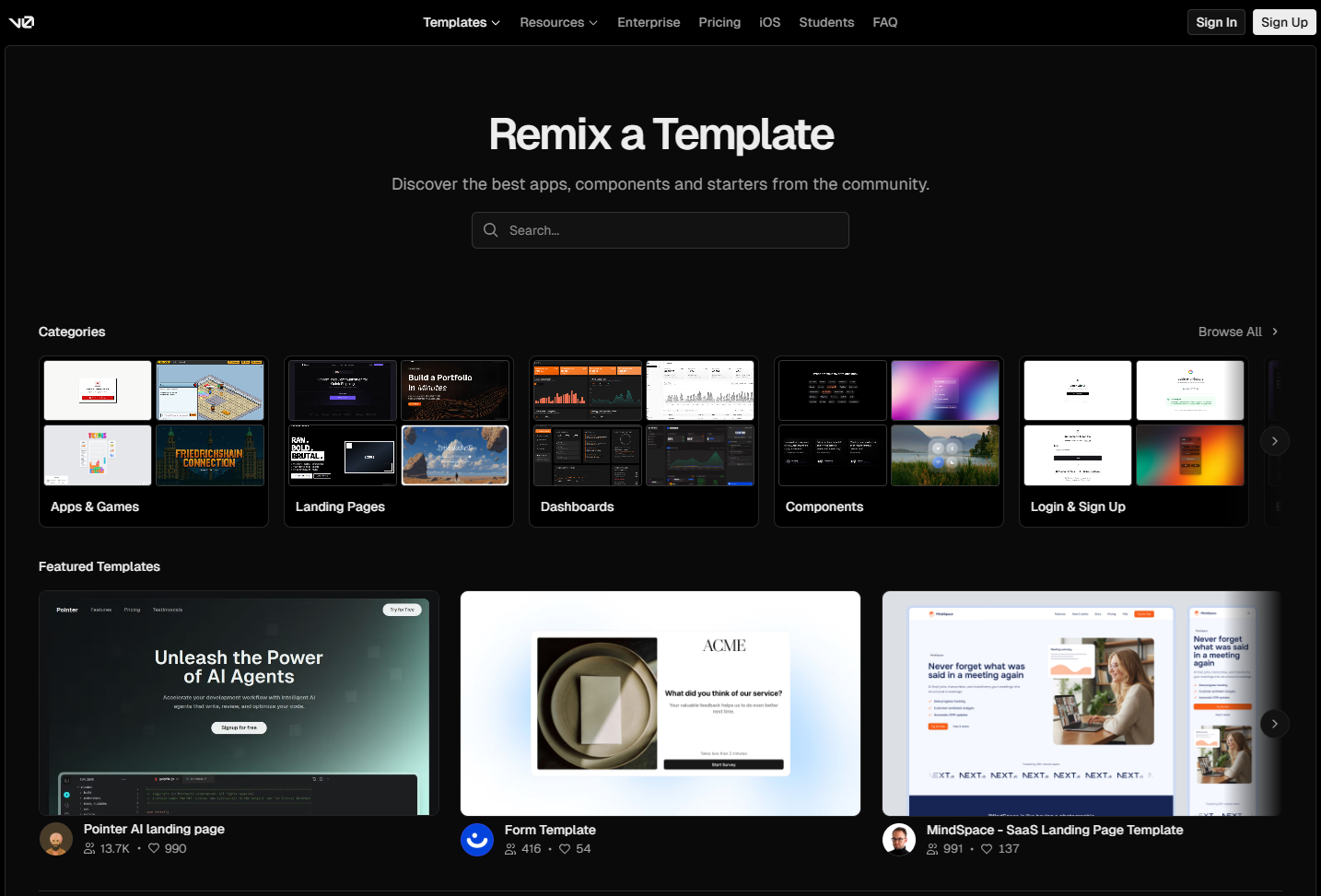 ▶ 개요 : Vercel이 개발한 AI 기반 UI 생성 및 풀스택 개발 플랫폼으로, 자연어 프롬프트를 통해 React 기반 웹 애플리케이션을 생성합니다.