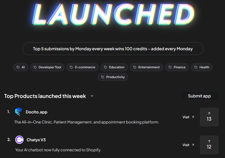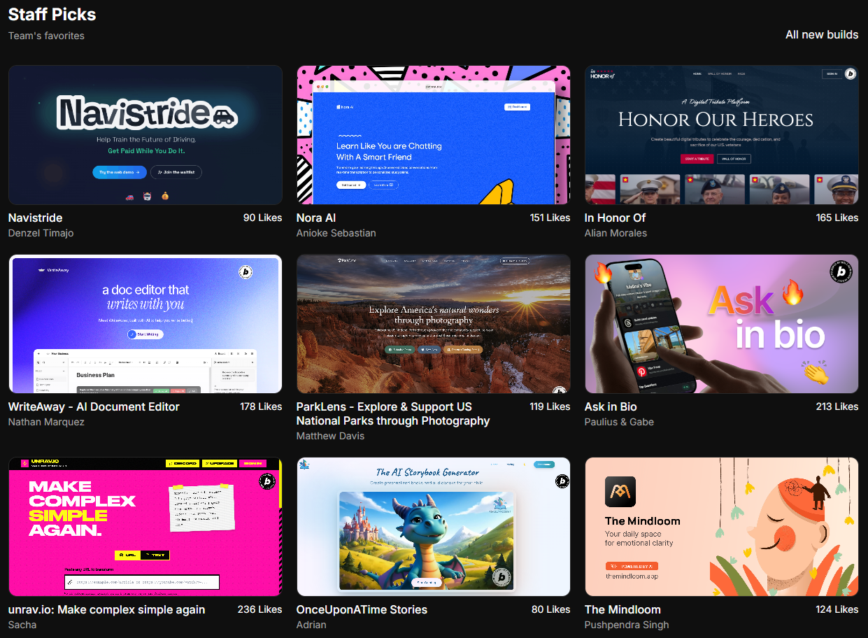 - Lovable.dev - Launched(매주 우수 앱 5개를 선정해 크레딧을 제공하는 리더보드)
