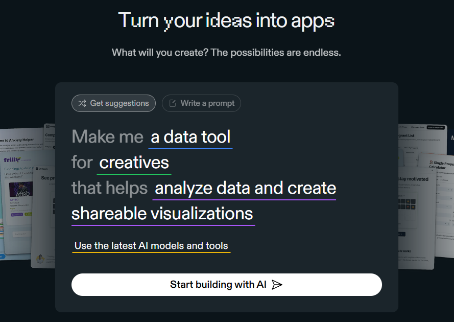 - 자연어 앱 생성 : 평문 영어로 설명하면 프론트엔드, 백엔드, 데이터베이스를 자동 구성