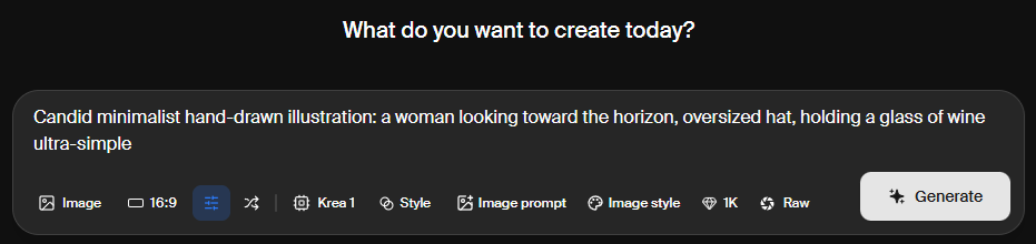 - Krea 1 모델 : 자체 개발 이미지 생성 모델로, 뛰어난 심미적 제어와 이미지 품질 제공