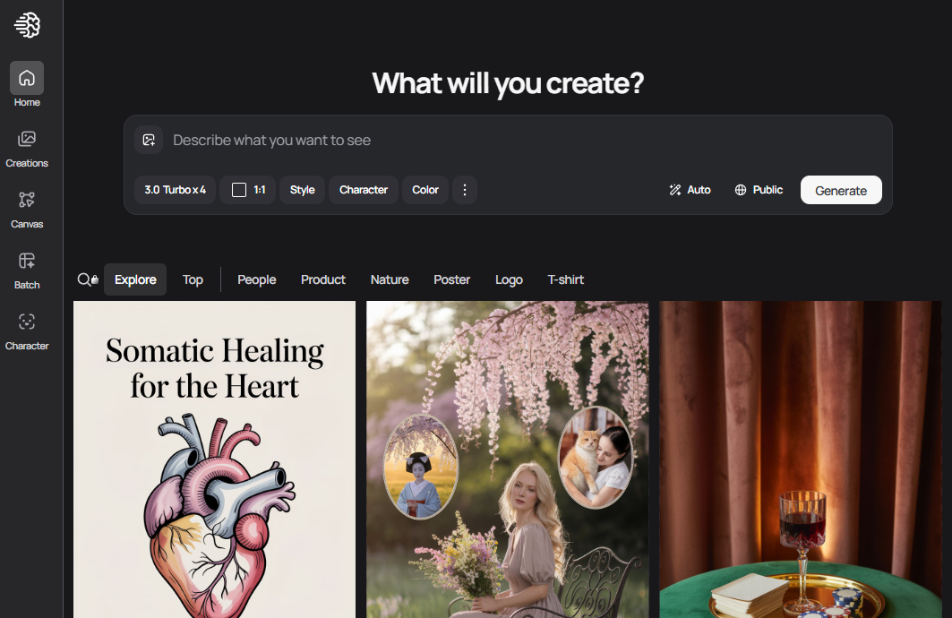 - Text-to-Image : 텍스트 이해로 간단하거나 상세한 프롬프트를 고품질 비주얼로 변환 (아트, 캐릭터 디자인, 배경, 마케팅 비주얼 등)