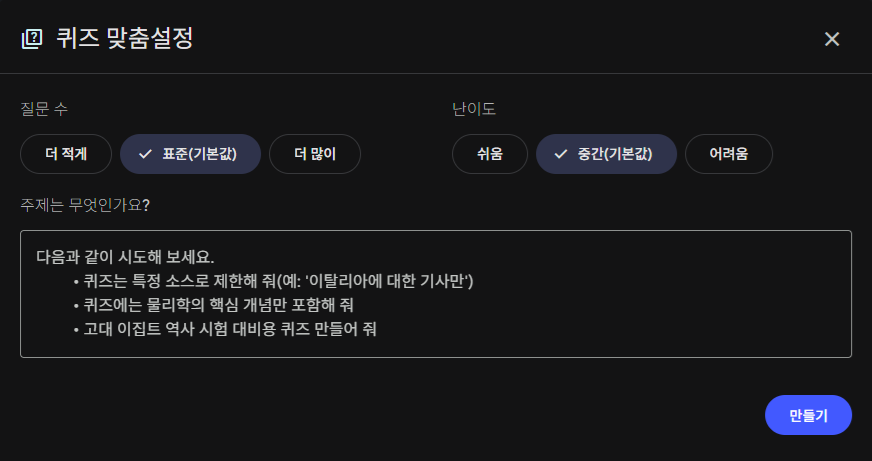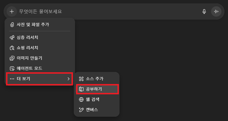 학습 모드 역시 사용자가 '구체적이고 명확하게' 요청할수록 더 효과적으로 응답할 수 있습니다.