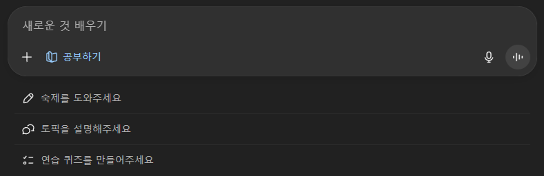 - 학습 모드용 기본 프롬프트 제공 (예: 숙제 도움, 주제 설명, 연습 퀴즈 생성 등)