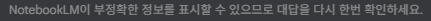 ⚠️ 주의 : NotebookLM의 스튜디오 기능은 소스의 내용을 '요약'만 하지 '검증'까지 해주지는 않습니다. 원본 자료에 오류가 있으면 결과에도 그대로 반영되므로, 중요한 내용은 반드시 소스의 신뢰성을 검증하고, 필요 시 원문까지 추적해 확인하기 바랍니다.