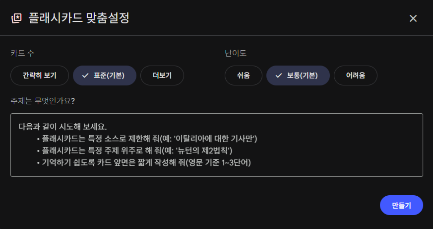 - 플래시카드, 학습 가이드 자동 생성 기능