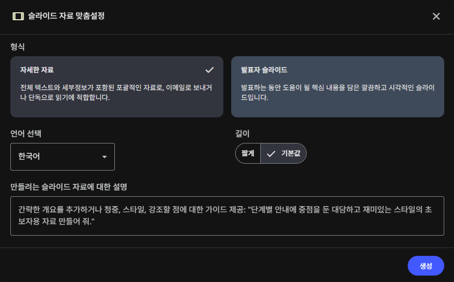 - 청중 수준(초보자/전문가, 경영진/실무진 등)에 맞게 톤과 복잡도 자동 조절