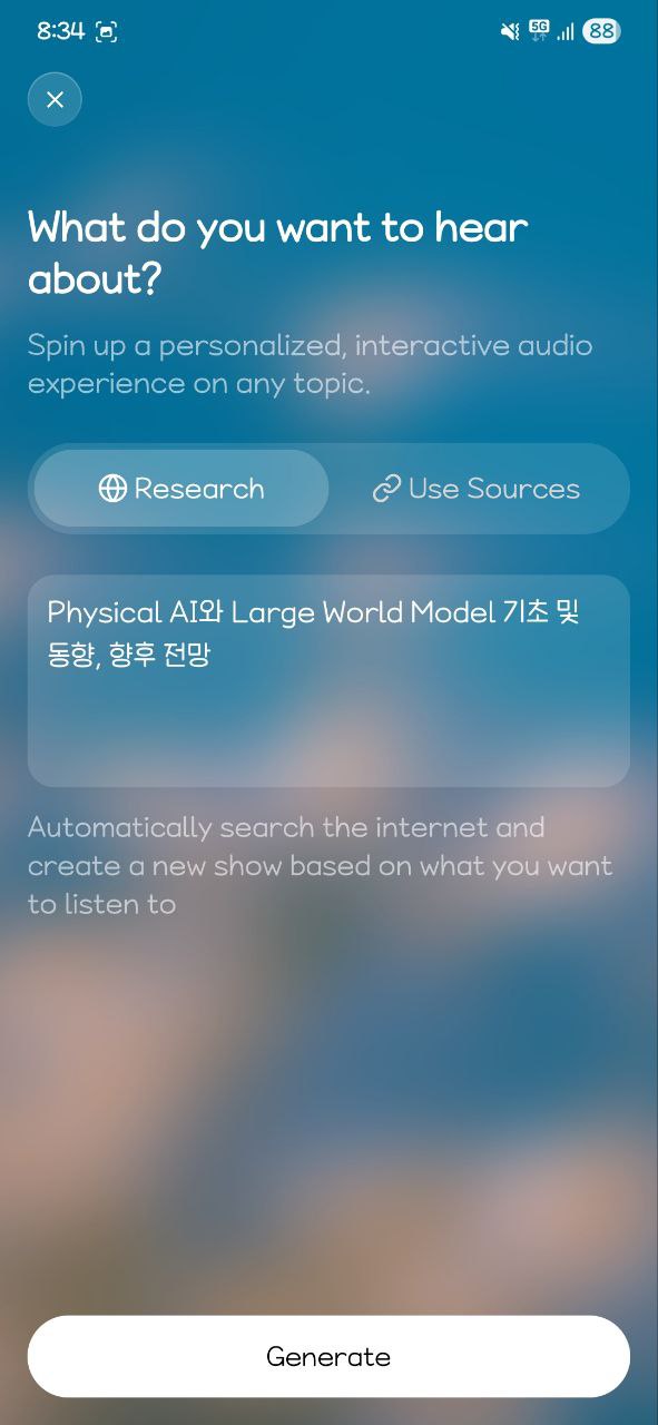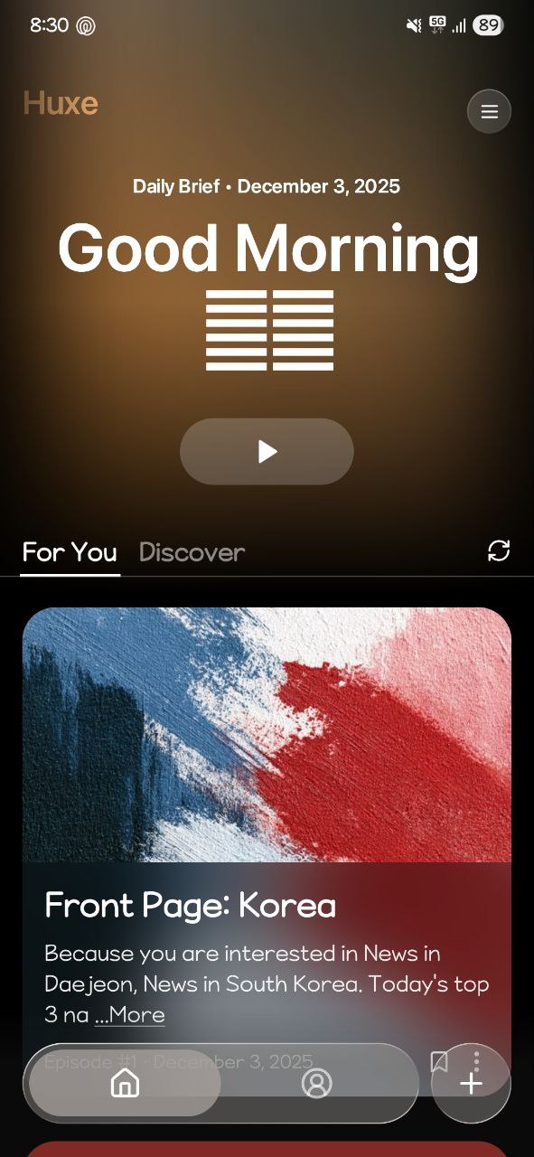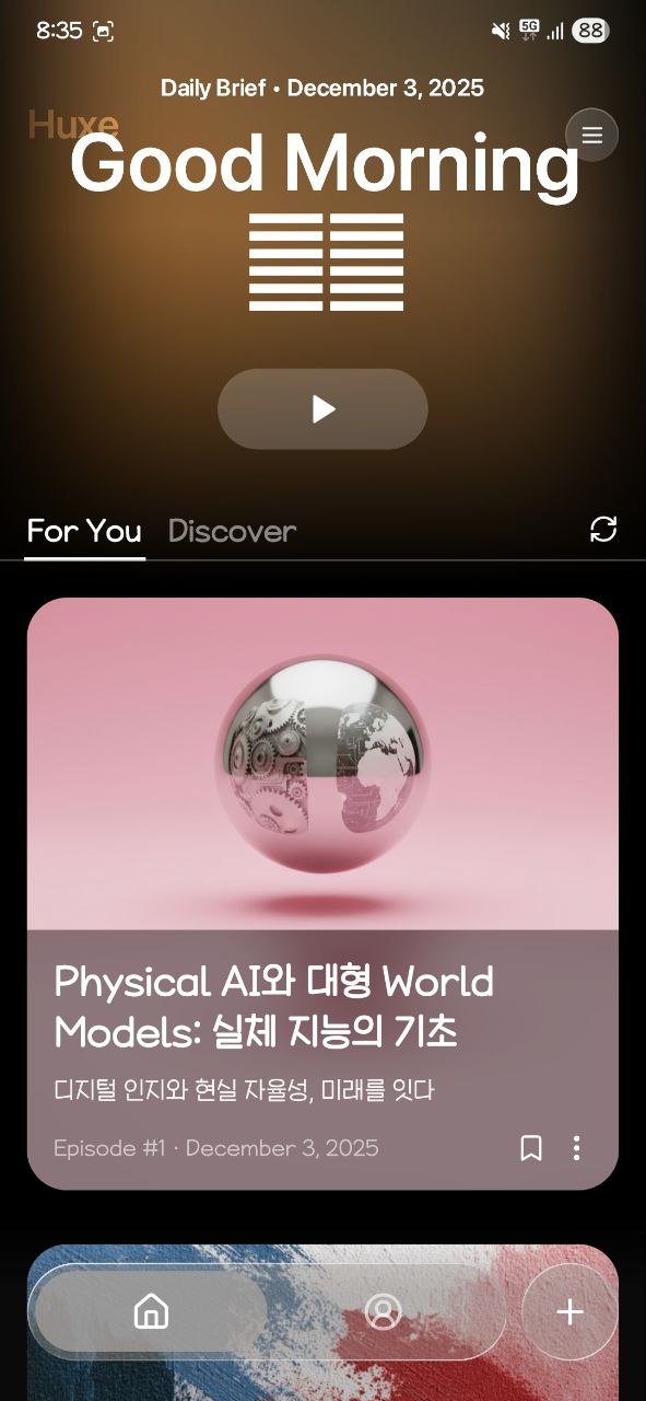 (아직은 가끔 불안정한 경우도 있기는 한데) 잠시 기다리는 동안 Huxe가 실시간으로 신뢰할 수 있는 출처를 검색해 AI 호스트들이 토론/대담하는 형식의 오디오를 생성해줘서, 출퇴근 중이나 가벼운 운동, 혼밥, 잠들기 전 등 짤막한 시간을 효율적으로 사용하는 데 매우 유용합니다.
