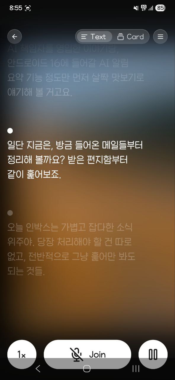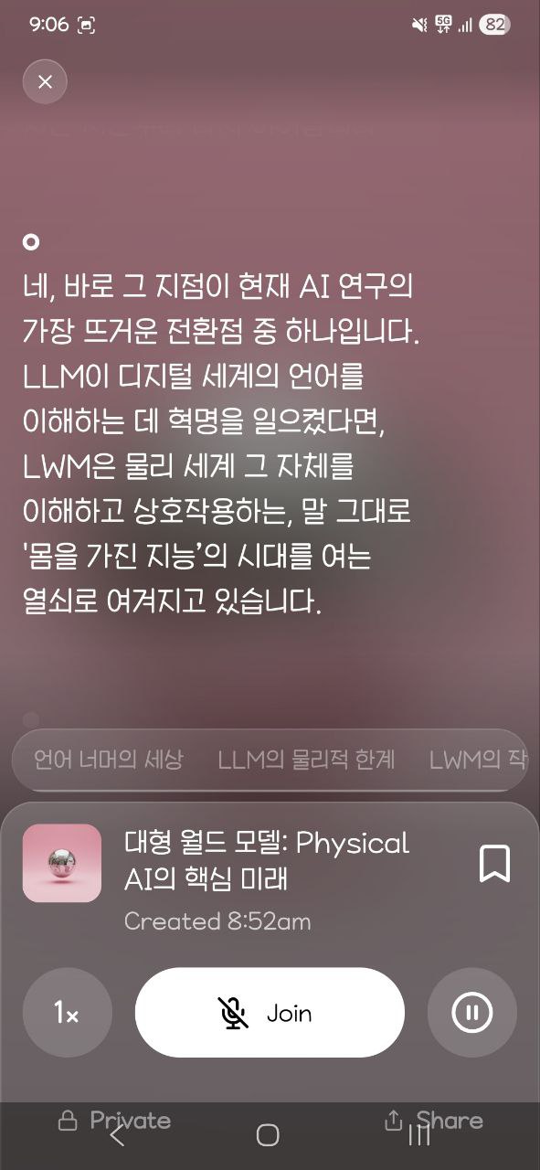 그리고 '양방향 대화' 기능도 있어서 모든 오디오를 듣는 중에 언제든 질문을 던지면 그에 대한 설명을 한 뒤 다시 원래의 내용을 이어가기도 합니다. (예: "잠깐, 그 회사에 대해 좀 더 알려줘" - 그런데 이것도 다소 매끄럽지 않은 경우가 있었음)