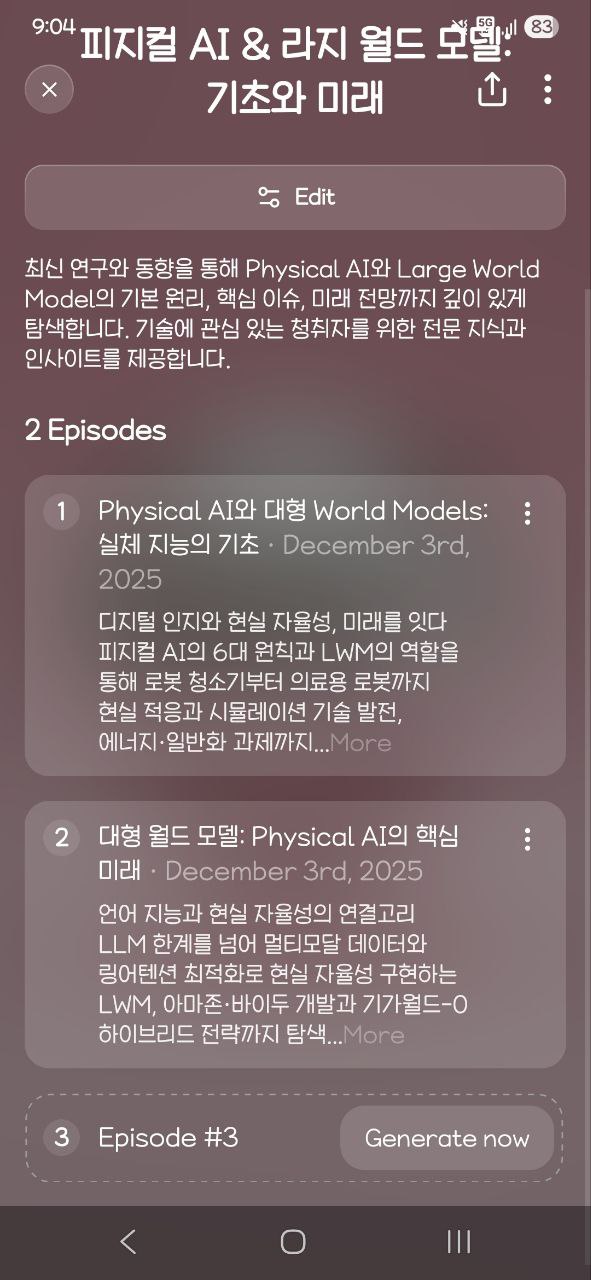 - (언제든 편할 때) 데일리 브리핑 듣기, 또는 딥캐스트 생성하기 등